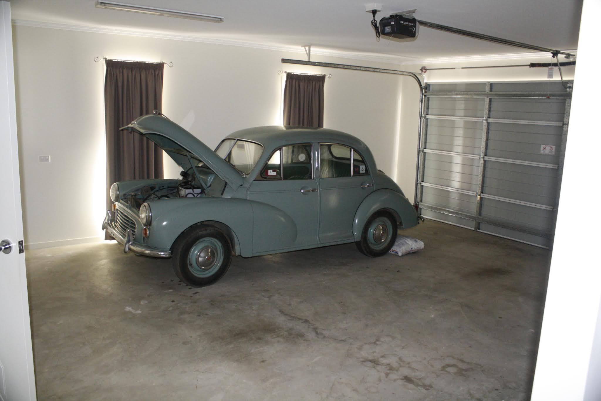 Oh and the car is no longer at the farm in the shed either. Time has come and the farm is being sold, so this time everything was sorted and moved. Luckily for me my parents have bought a house that has three garages and they have let me move the Morris into one of these! Its very exciting as The count hasn’t been in a real garage for so many years now it won’t know what is going on. I must say what a garage it is too, the wee car looks quite dwarfed in all that space, its fantastic! Wish I had one that size here in Melbourne I tell you, mind that would probably be dangerous as I would just want to fill it with cars and bikes, which would be counter productive to this trip. Hopefully the Count won’t do what Morries generally do and drop oil and such fluids on to the nice clean garage floor before we can get something under it, really such action would not be very sporting of it given the nature of its new accommodation.